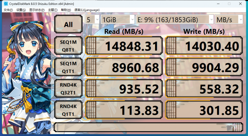 CrystalDiskMark 测试效果:
